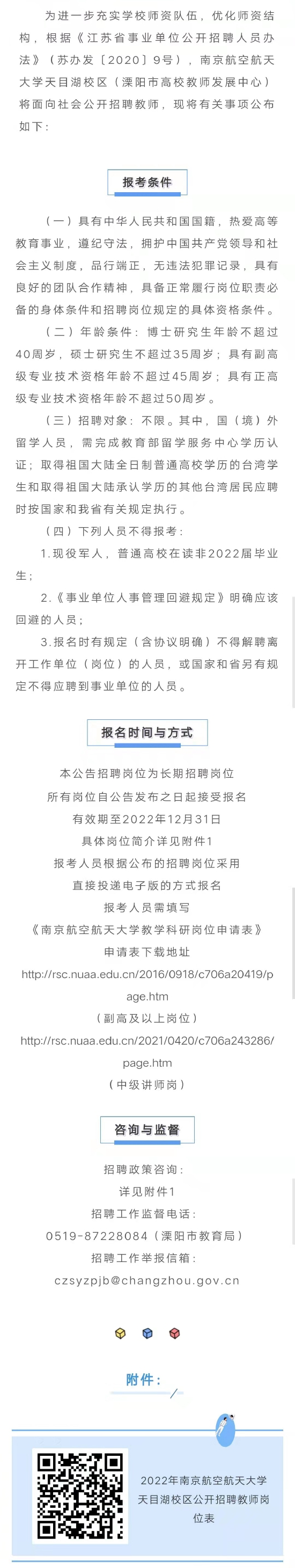 2022年南京航空航天大学天目湖校区(溧阳市高校教师发展中心)公开招聘教师公告 新浪常州 03月10日 10:27 关注 确定不再关注此人吗 摘要: 2022年南京航空航天大学天目湖校区(溧阳市高校教师发展中心)公开招聘教师公告 分享文章到: