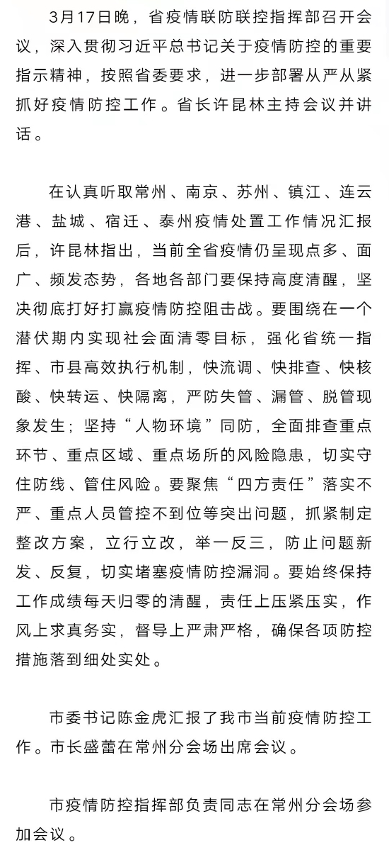 把各项防控措施落到细处实处 | 省疫情联防联控指挥部召开会议 许昆林主持 政府网站 03月18日 14:50 关注 确定不再关注此人吗 摘要: 把各项防控措施落到细处实处 | 省疫情联防联控指挥部召开会议 许昆林主持 分享文章到: