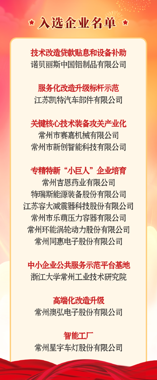 近日,2022年度江苏省工业和信息产业转型升级专项资金(第三批)拟安排项目公示,常州国家高新区有13家企业成功入选!