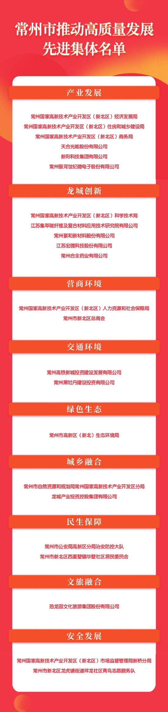 关注近日,中共常州市委、常州市人民政府对2021年度全市推动高质量发展先进集体和先进个人,予以通报表彰,新北区这些集体和个人榜上有名。
