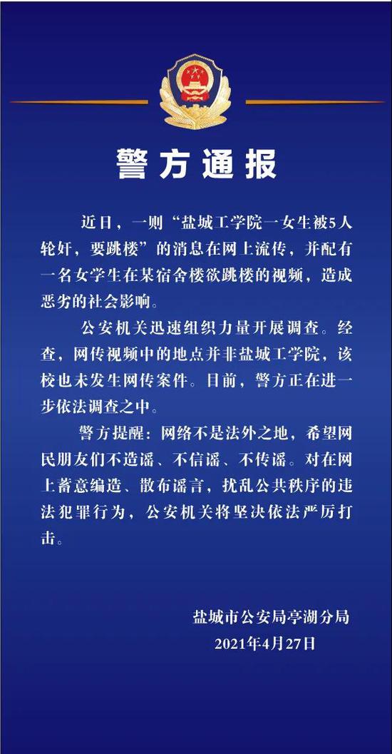 盐城工学院一女生遭轮奸跳楼?警方辟谣!