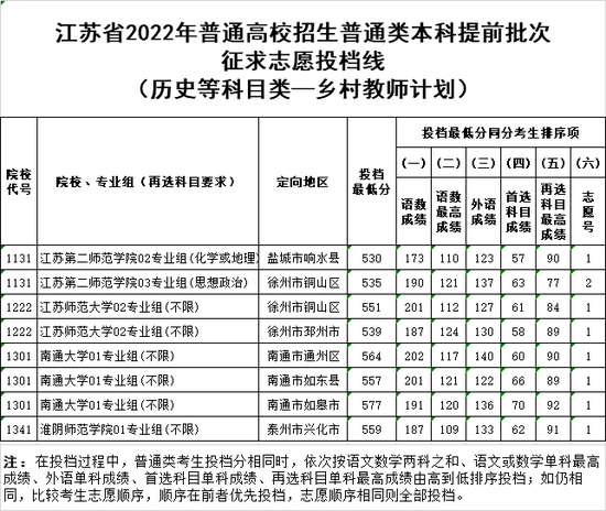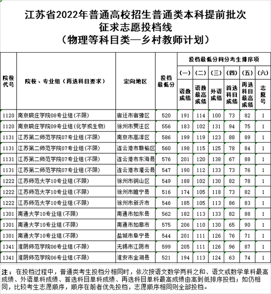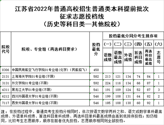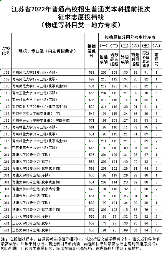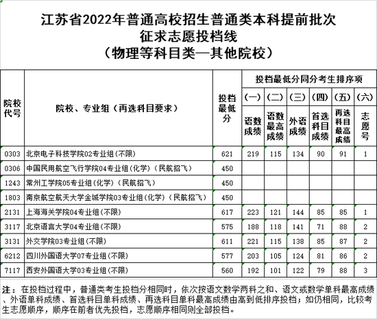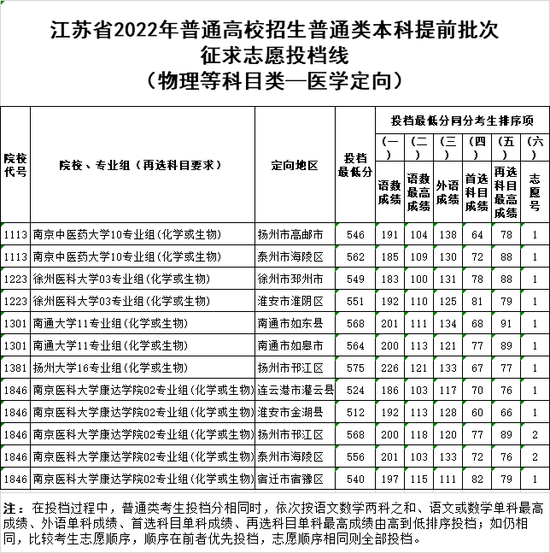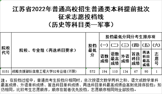 江苏省2022年普通类本科提前批次征求志愿投档线发布