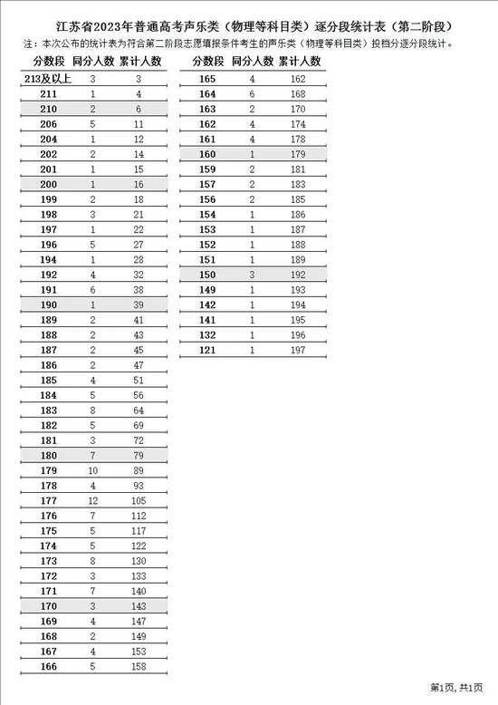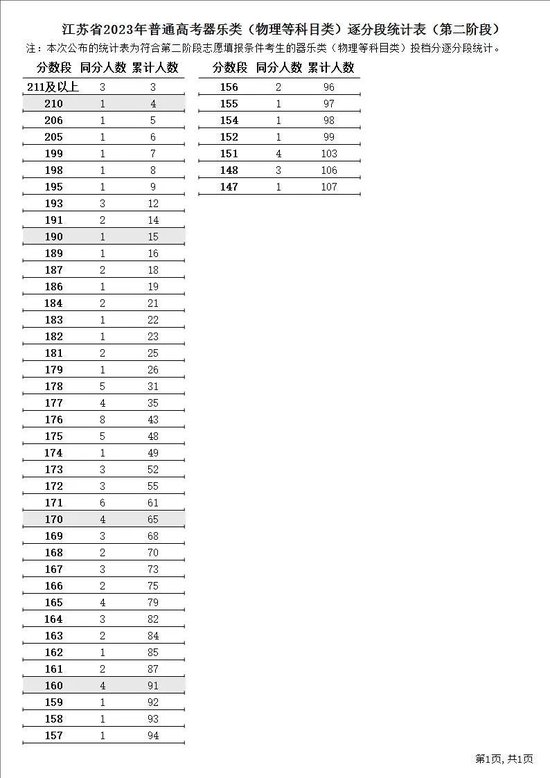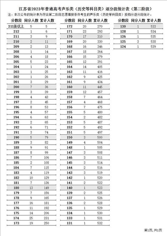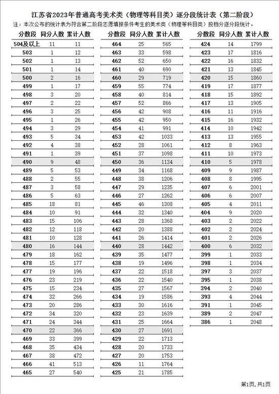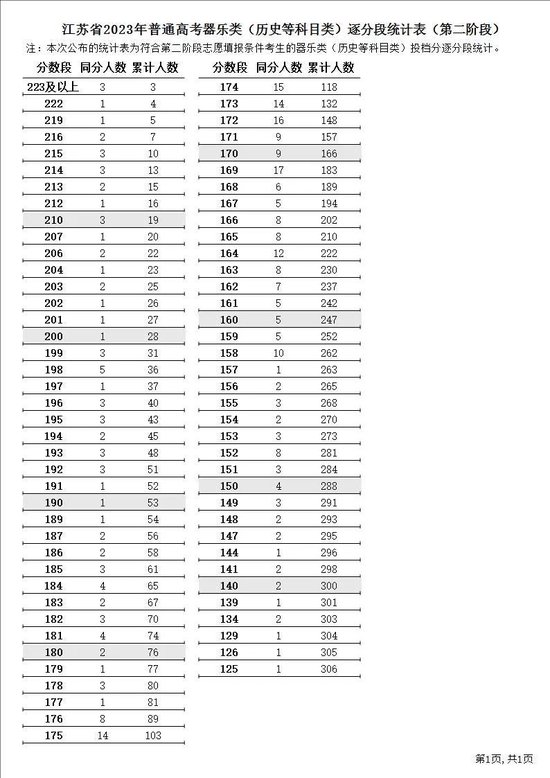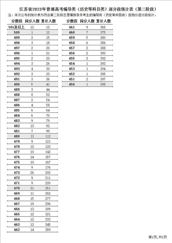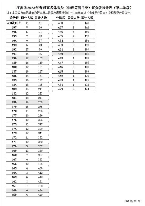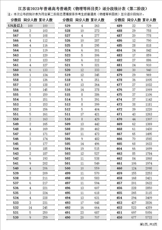 江苏省2023年普通高考逐分段统计表(第二阶段)