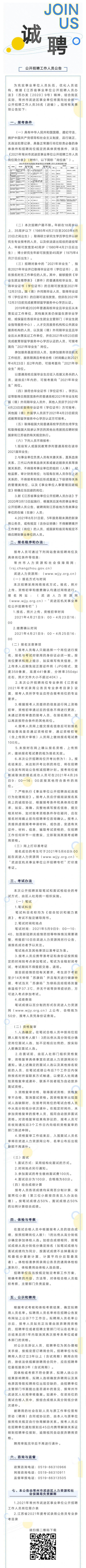 2021年常州市武进区事业单位公开招聘工作人员公告 新浪常州 04月10日 14:30 关注 确定不再关注此人吗 摘要: 为充实事业单位人员队伍,优化人员结构,根据《江苏省事业单位公开招聘人员办法》(苏办发〔2020〕9号)精神,结合我区实际,常州市武进区事业单位将面向社会统一公开招聘工作人员36名(进编)。现将有关事项公告如下: (常州发布) 分享文章到: