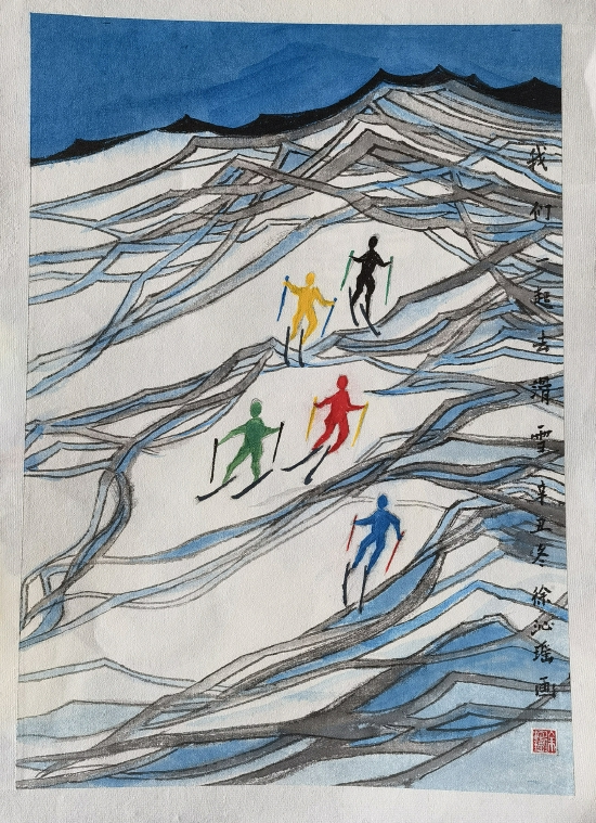 这8幅作品,包含金坛华罗庚实验学校与金坛实验幼儿园孩子们绘制的《滑到冬奥会场去》《荣耀2022》《我们一起去滑雪》等作品。孩子们通过手中的画笔,描绘出他们心中的“冬奥梦”,展现了少年儿童喜迎冬奥、热爱冰雪运动场景以及“一起向未来”的美好心愿。