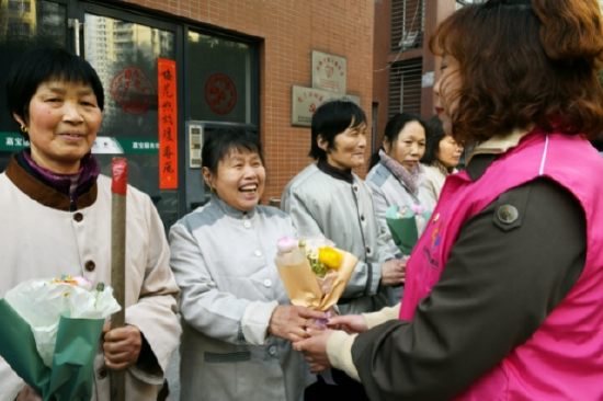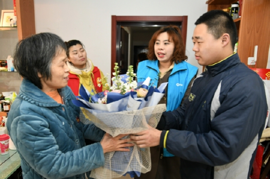 关注7日,钟楼区五星街道飘香路社区的党员、网格员、巾帼志愿者一起自己动手制作鲜花捧花,送给辖区内的军属、困境儿童的外婆,以及小区的保洁员和物业“小管家”,送上节日的问候,共迎“三八”妇女节。