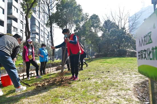 3月11日,钟楼区五星街道勤二社区新时代文明实践站组织社区工作人员、党员志愿者及高成物业工作人员开展植树活动,打造“人人社区•共享文化林”。社区以“人人共享文化林”为载体,让居民共同进行绿化养护,参与到社区治理中。