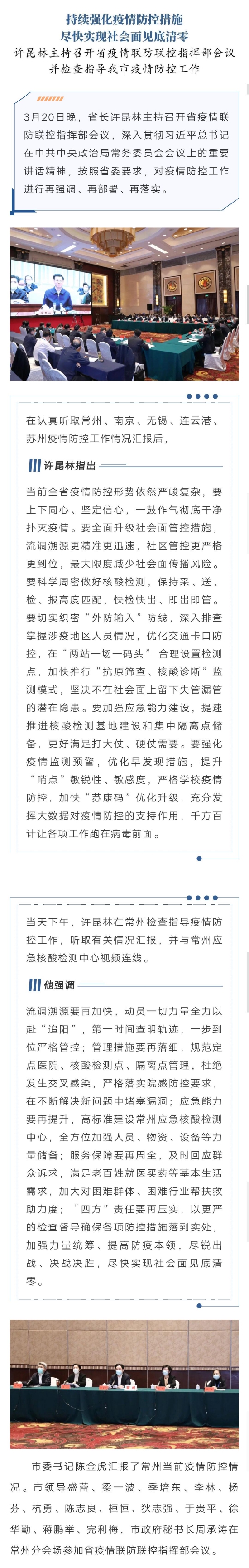许昆林主持召开省疫情联防联控指挥部会议并检查指导我市疫情防控工作 政府网站 03月21日 10:19 关注 确定不再关注此人吗 摘要: 许昆林主持召开省疫情联防联控指挥部会议并检查指导我市疫情防控工作 分享文章到: