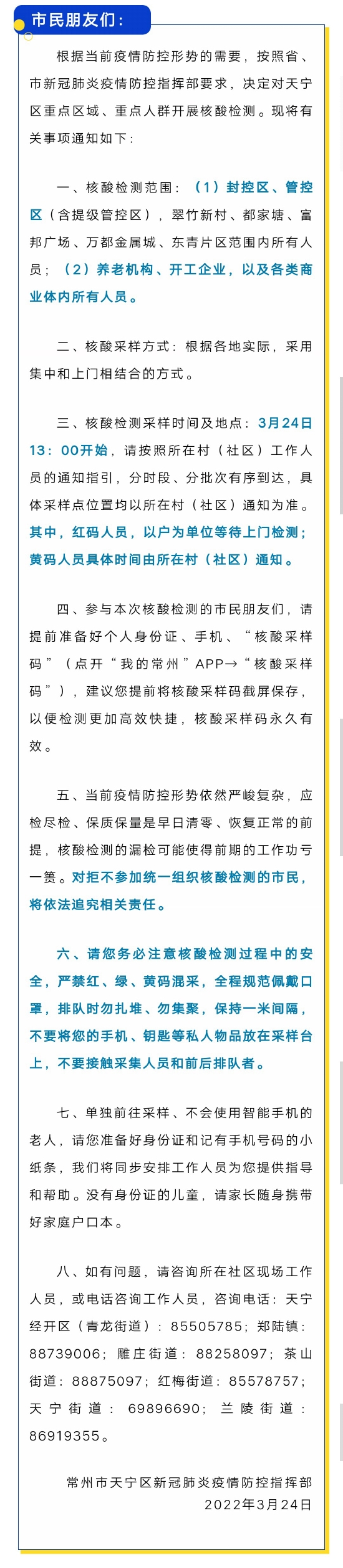 关于开展天宁区重点区域、重点人群核酸检测的通知