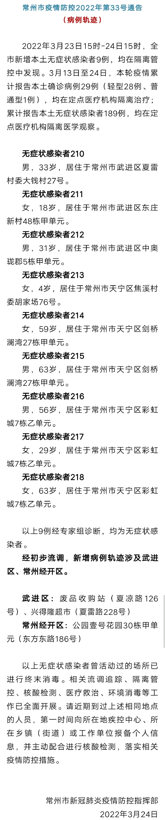 常州市疫情防控2022年第33号通告(病例轨迹)