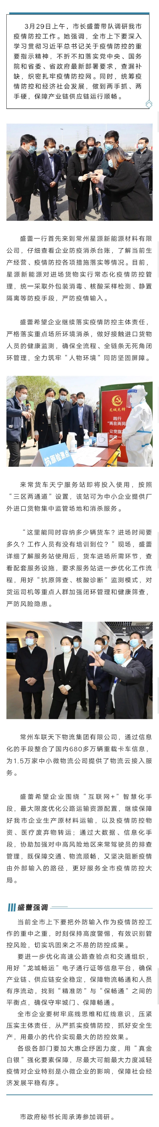 市领导调研疫情防控工作 | 坚持两手抓两手硬 保障产业链供应链运行顺畅 政府网站 03月30日 10:33 关注 确定不再关注此人吗 摘要: 市领导调研疫情防控工作 | 坚持两手抓两手硬 保障产业链供应链运行顺畅 分享文章到: