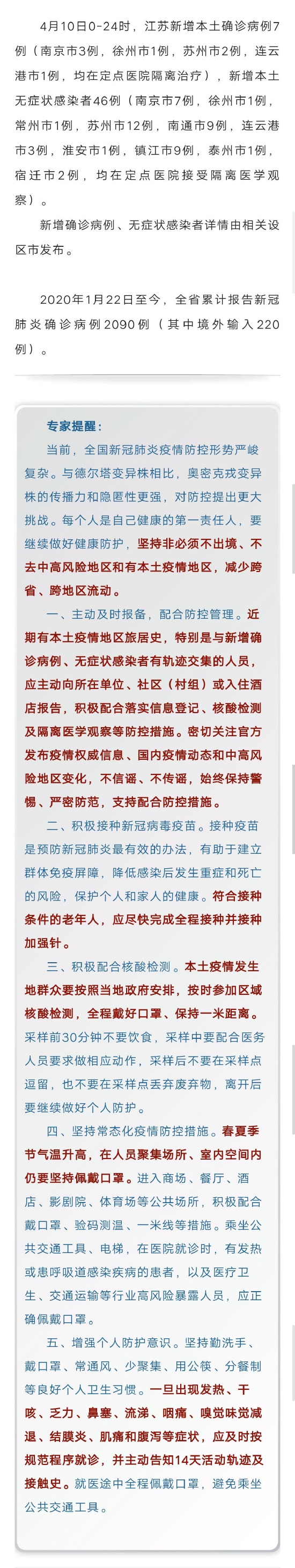 截至4月10日24时江苏新型冠状病毒肺炎疫情最新情况