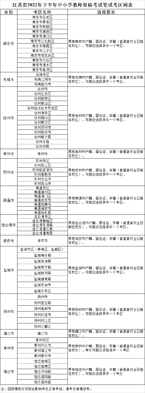 有这些考区!江苏省2022年下半年中小学教师资格考试笔试考区一览表 扬子晚报网 08月20日 14:47 关注 确定不再关注此人吗 摘要: 有这些考区!江苏省2022年下半年中小学教师资格考试笔试考区一览表 分享文章到: