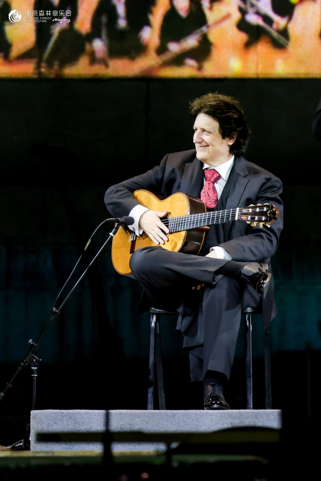 西班牙吉他演奏家兼作曲家胡安·曼努埃尔·卡尼扎雷斯怀抱吉他奏响《安达卢斯协奏》,更是将现场气氛推向高潮。这部协奏曲为卡尼扎雷斯纪念其恩师——弗拉明戈大师帕科·德·卢西亚而作,融汇弗拉明戈传统节奏与古典协奏曲结构,兼具技术挑战与情感表达,完美展现南欧文化的激情与细腻。