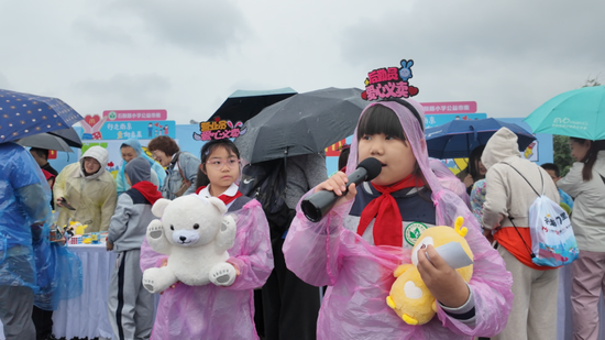 在东水关城墙段的爱心公益市集上,来自石鼓路小学的孩子们卖力地吆喝着,邀请行走者一起为患病小朋友献爱心。市集上不仅有孩子们带来的书本、玩具等物品,也有许多来自“麦当劳叔叔之家”受助患儿的手工作品。