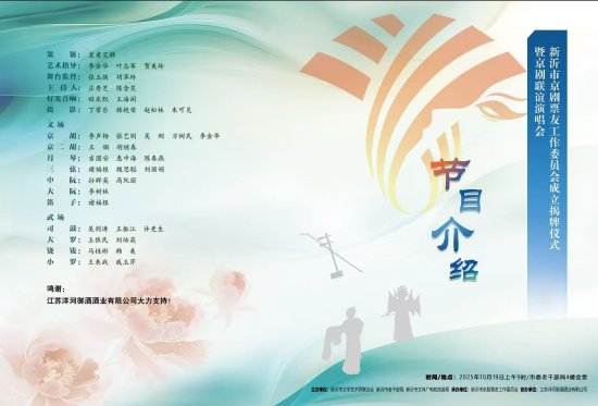 2025年10月19日,新沂市京剧票友工作委员会正式揭牌成立,揭牌庆典活动暨新沂市京票工委京剧联谊演唱会同时圆满落下帷幕。