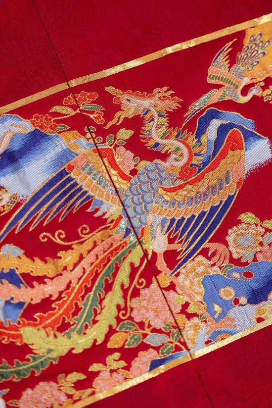 《百鸟朝凤吉服》由“90后”设计师高文芝主持设计,纹样源自明代典籍,以柿蒂纹为底,织有九对祥禽朝凤,寓意“事事如意”“长长久久”“十全十美”。“团队研发超过300多天,将纹样精度提升至每平方厘米780格,并创新采用16色纬线与‘玉翎线’织造,令凤凰纹样在不同光线下呈现璀璨变色效果。”陈诚介绍。