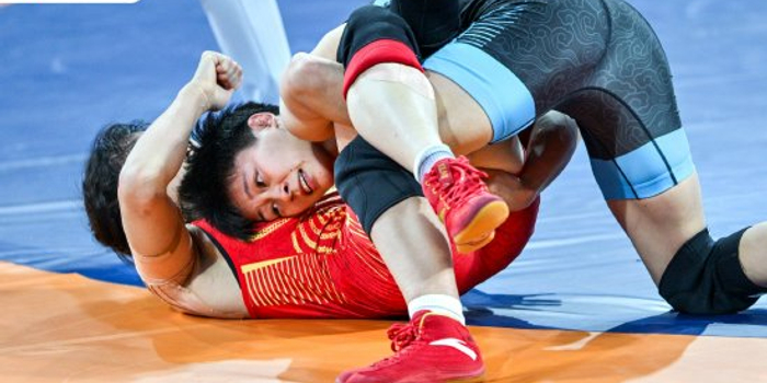 江苏运动员洪可新获得第十五届全运会女子自由式摔跤57公斤级金牌