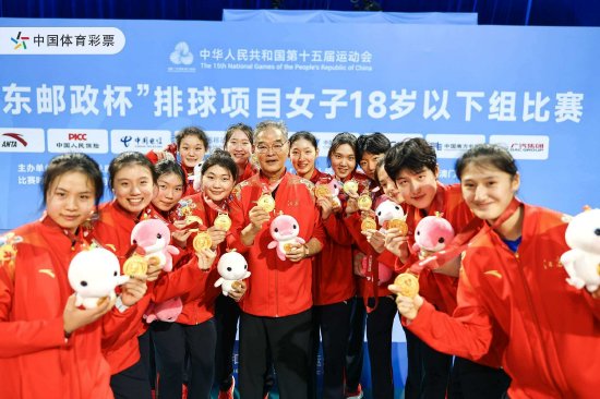 关注11月18日晚,在十五届全运会排球项目女子18岁以下组决赛中,江苏队3:0战胜上海队,获得金牌。摄影:阮忠