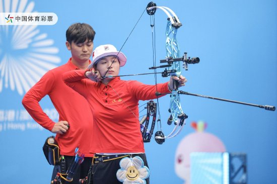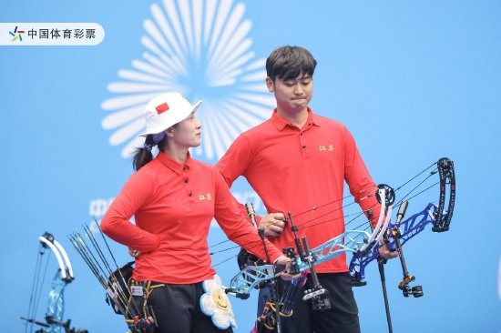 11月20日下午,第十五届全运会射箭项目复合弓混合团体赛在深圳市体育中心体育场举行,以张心妍和丁倚亮组成的江苏代表队力克浙江队,夺得冠军。摄影:阮忠