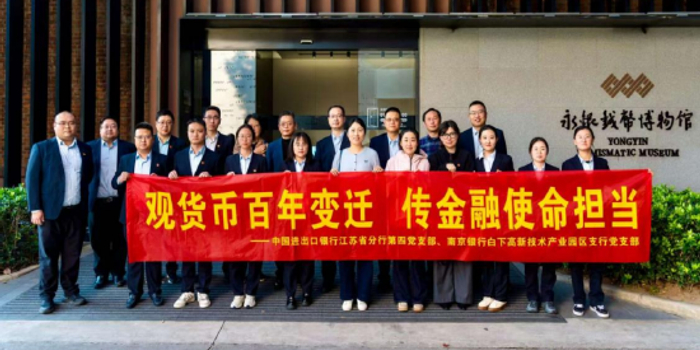为深入学习贯彻习近平新时代中国特色社会主义思想,从百年红色金融史中汲取智慧和力量,11月14日下午,进出口银行江苏省分行第四党支部与南京银行白下高新技术产业园区支行党支部携手走进永银钱币博物馆,共同开展“观货币百年变迁,传金融使命担当”联合主题党日活动。此次活动旨在通过追溯货币发展历程,引导党员干部感悟金融工作的初心使命,强化党性修养和责任担当。进出口银行江苏省分行、南京银行南京分行、城东中心支行相关领导参加了活动。