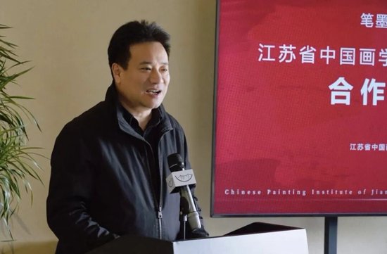 活动伊始,江苏省中国画学会监事长王强致欢迎辞,对南京广播电视集团教育发展部一行的到来表示热烈欢迎,并展望了双方合作的美好前景。