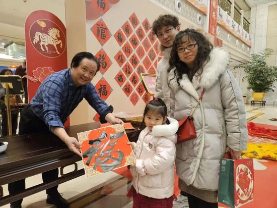 活动现场红运福卡、墨韵飘香,著名画家张广才现场挥毫泼墨,笔力沉稳间饱含新春吉庆,一幅幅马年福字,创意别致新颖,结合了福字与马字的特点,即体现福字的端庄喜庆、气韵盎然,又别出心裁的结合繁体马字的创作理念,尽显中华书画艺术之美。往来宾客纷纷驻足欣赏、有序领取,欢声笑语与笔墨书香交织,浓郁的年味儿与文化气息充盈在宾馆每一处角落。来自国外的游客手捧寓意吉祥的大红福字,欣喜地表示,在新春之际收到中国艺术名家亲笔书写的福字,让他沉浸式感受到了中国传统新年的热闹与温情,这份独一无二的新春礼物格外珍贵,也让他对博大精深的中华传统文化心生向往。