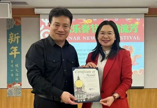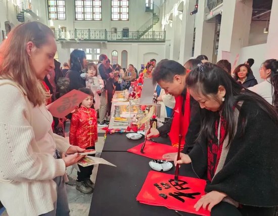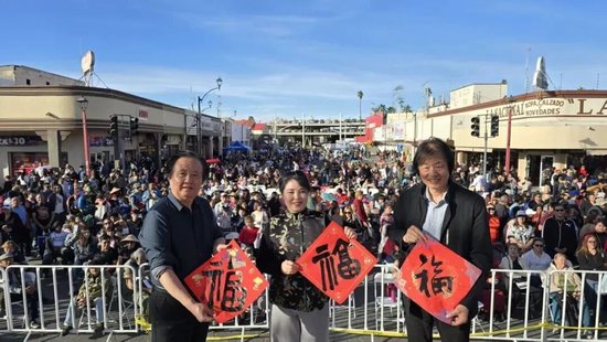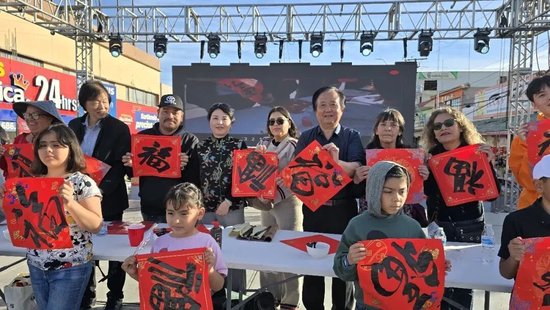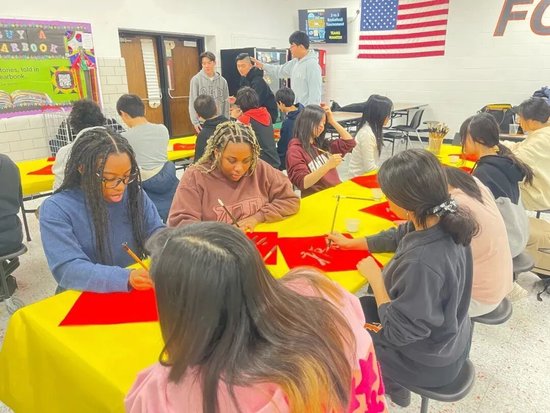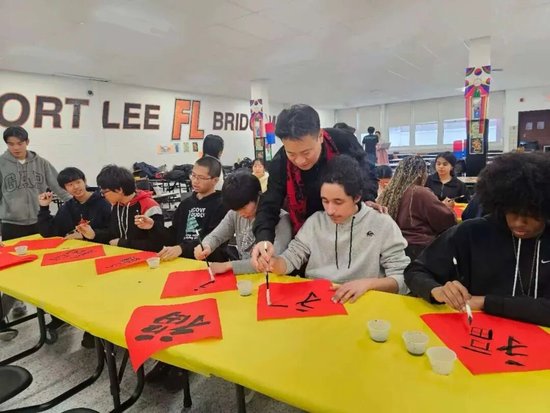 2月11日,翟优、樊蕾来到新泽西州李堡市参加春节联欢活动,现场为近500名当地民众和侨胞书写“福”字。李堡市市长马克·索科利奇表示,文化交流让两国人民的心更近、感情更深。之后,两人还走进新泽西利堡高中,开展讲福、写福、送福活动,让美国青年学生更加了解中华文化,感受中国春节的热闹氛围。
