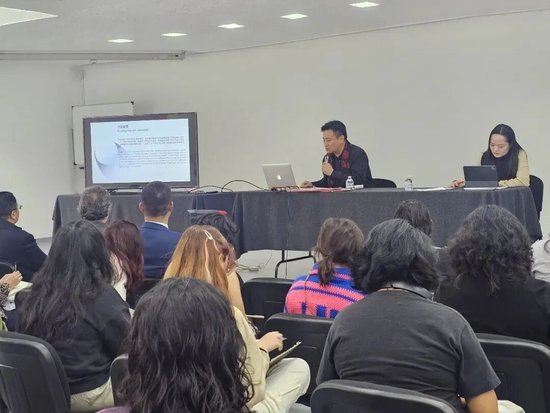 2月27日,翟优受邀来到墨西哥国立绘画雕塑及版画学校,举办“墨彩同辉·美美与共”主题讲座和示范教学。这所拥有百年历史、培养出迭戈·里维拉等艺术大师的知名学校,第一次迎来中国画家前来交流讲学。翟优系统介绍了中国画2300多年的传承历史,讲解了“天人合一、写意传神”的核心特点,并与西方油画“人文理性、写实造型”的特点进行对比,提出不同文明之间的差异不是隔阂,而是交流互鉴的宝贵基础。在示范环节,他现场创作《和平友好》,流畅灵动的笔墨赢得师生们的阵阵称赞。大家纷纷拿起毛笔体验中国画,在亲身实践中感受东方艺术的独特魅力。