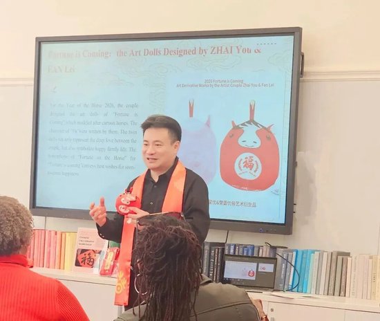 2月26日,在墨西哥中国文化中心,樊蕾教授举办“马年话福”专题讲座,从甲骨文到楷书,梳理了“福”字千年的发展历程,讲解了它与马年生肖的文化联系。翟优与樊蕾现场挥毫写字,把写好的“福”字送给到场民众。墨西哥友人Ssaf Venegas Sam说,这是他第一次系统了解中国福文化,温暖真诚的祝福让他更加喜欢中国文化。
