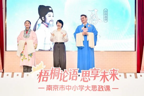 今天故事发生的地点,选择在了城墙下的文枢初级中学。“梧桐论语·思享未来”青年理论宣讲启动暨南京市中小学大思政课活动,在此近距离聚焦一所学校的育人温度,捕捉一群少年眼里的光。在读城推荐官、“金陵卓秀才”卓俊宇的主持下,南京城墙博物馆副馆长金连玉互动分享《“砖”心致志, 家国在心》,南京市越剧团团长、中国戏剧“梅花奖”得主李晓旭现场演绎越剧《凤凰台》片段,以南京本土戏曲、家乡故事诠释家国情怀,让孩子们在文脉中读懂城市、厚植自信,真正实现以文化人、铸魂润心。