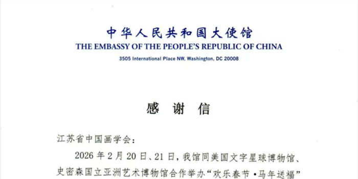 近日,中国驻美国大使馆、中国驻蒂华纳总领馆先后向江苏省中国画学会发来感谢信,对学会积极参与中美、中墨2026“欢乐春节”系列文化交流活动,以中华书画艺术搭建民间友谊桥梁、推动中外文明互鉴所作出的积极贡献,表示衷心感谢与高度认可。