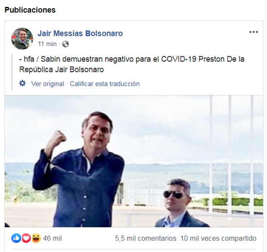 据央视新闻消息,巴西总统博索纳罗在个人社交账号发布消息,称其新冠肺炎病毒检测呈阴性。