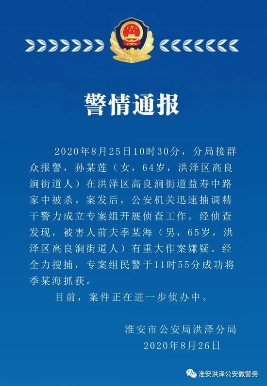 淮安64岁女子在家中被杀 前夫有重大作案嫌疑已被抓获