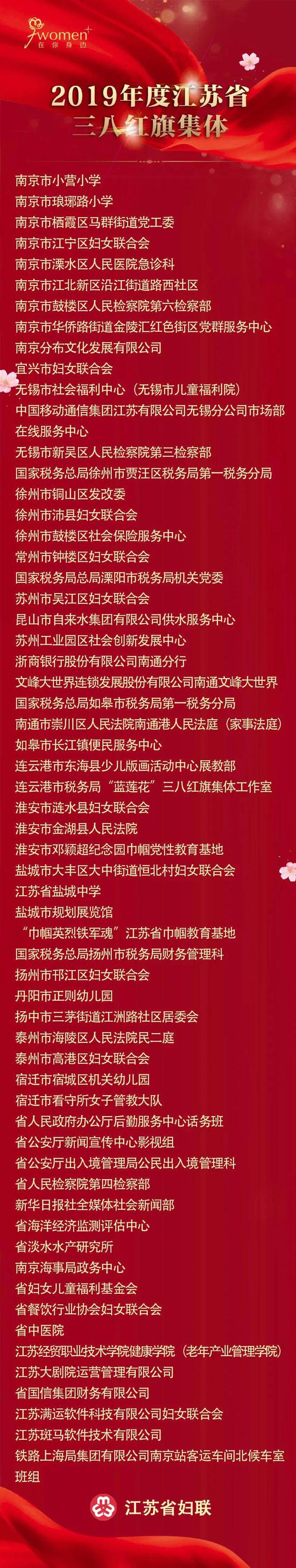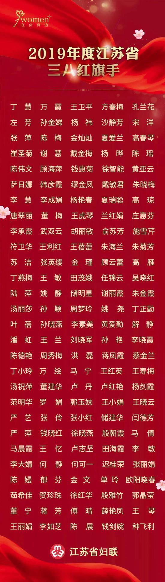 全名单来了!江苏省妇联表彰2019年度江苏省三八红旗手