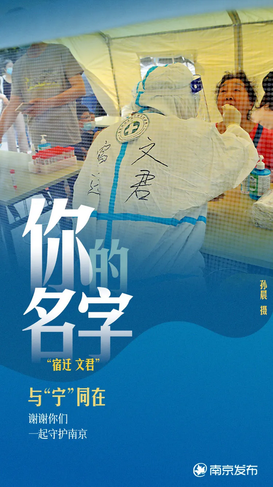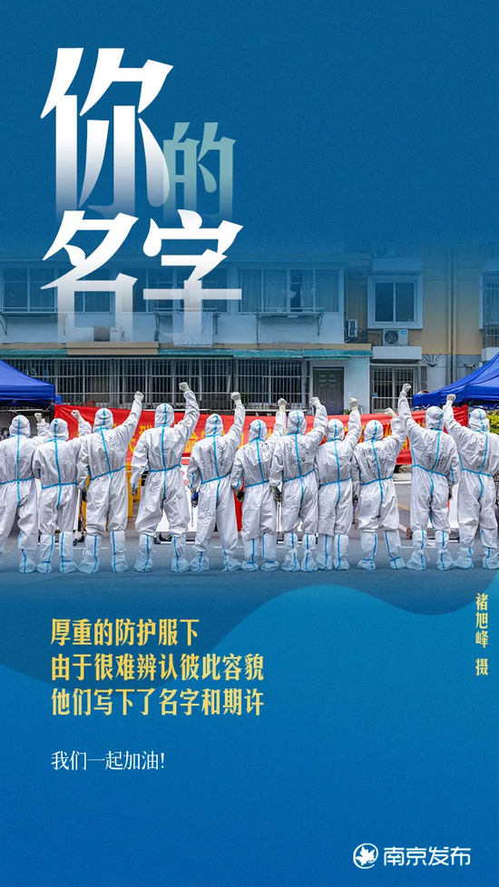 你的名字! 南京发布 08月10日 16:22 关注 确定不再关注此人吗 虽然看不清你的脸庞 却从防护服上认识了你的名字 谢谢烈日下的你 谢谢骤雨中的你 谢谢凌晨驰援的你 谢谢深夜奔波的你 谢谢那个 不停地说“张嘴,啊”的你 谢谢那些 我们还不知道名字的你 分享文章到: