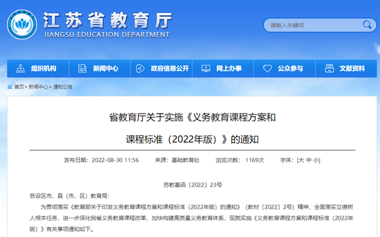 关注今天,江苏省教育厅发布关于实施《义务教育课程方案和课程标准(2022年版)》的通知,明确2024年全省统一中考命题。