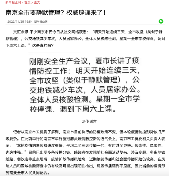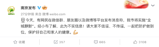 南京发布:“全城静默”为不实信息