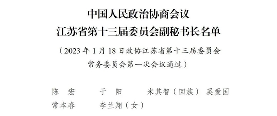 中国人民政治协商会议江苏省第十三届委员会副秘书长名单