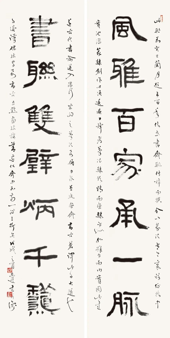 言恭达 隶书自撰联 风雅百家承一脉 书联双璧炳千秋