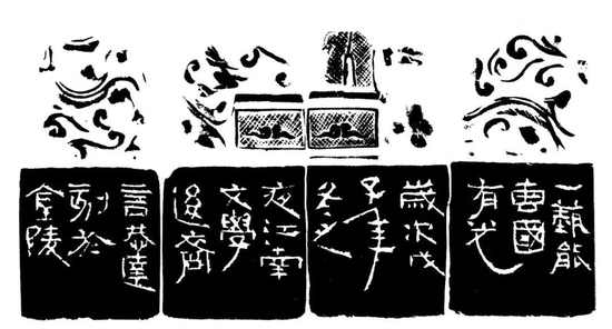 言先生在其师沙曼翁先生的引领下,在苏州一带书法名家的影响下,在晚清以来书法大家的启示下,走向了碑帖结合之路,在扎实的甲金篆籀书法的基础上,在中国传统艺术思想特别是道家思想,如大巧若拙、大成若缺、计白当黑、反者道之动等艺术理念的指引下,融入了南宋以来金石学的成果,对清代碑学有着深刻的理解和领悟,将碑的涩、厚、重、宽、博等因素,融入到帖的流畅、典雅、映带、圆劲之中,形成了既质朴凝练又典雅峻拔,书卷之气溢满纸楮的艺术风格。更加难得的是,他的碑帖结合已经摆脱了形的外在之貌,在如甲骨、金文、小篆中,不仅保留了碑学的残缺、高古和金石的自然风化之美,而且还创造性地融入帖的自然书写性和审美的写意性,笔断意连、笔断势连、虚实相间、浓淡互用;其草书特别是大草将篆隶、碑版的金石元素融入到书写之中,利用用笔、墨色、轻重、断连等变化产生碑派之态、金石之气,以篆籀之基铸就了自己的书法艺术,形成了独特的书法风格。其显著的特点是在注重“速度、压力、节奏”的前提下,强化艺术空间意识,实现从二维进入三维的布白创变。
