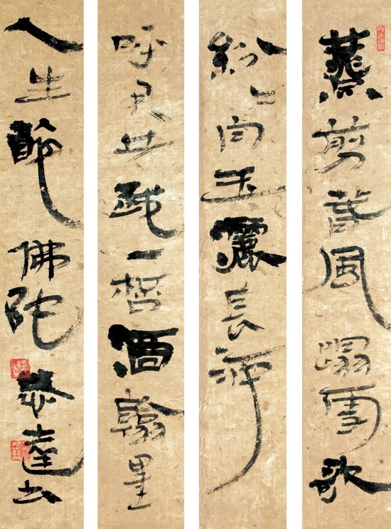 言恭达 隶书自作诗《燕剪春风》四条屏 燕剪春风踏雪歌,纷纷白玉洒长河。呼君共我一杯酒,翰墨人生醉佛陀。
