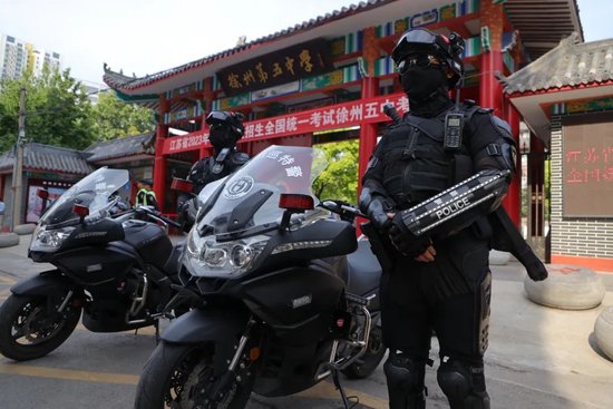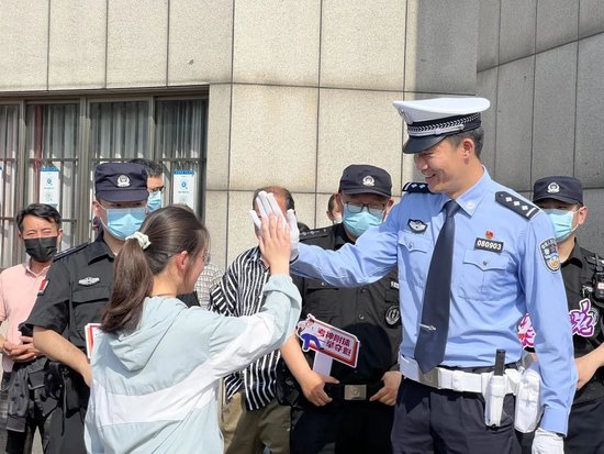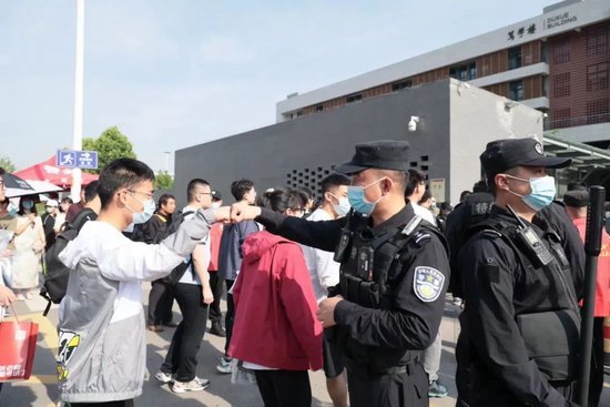 ▲ 2023高考首日,新海高级中学考点门口,交警支队高新区和机动大队在疏导车辆。