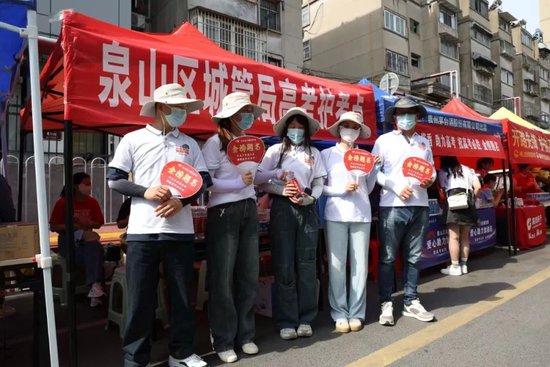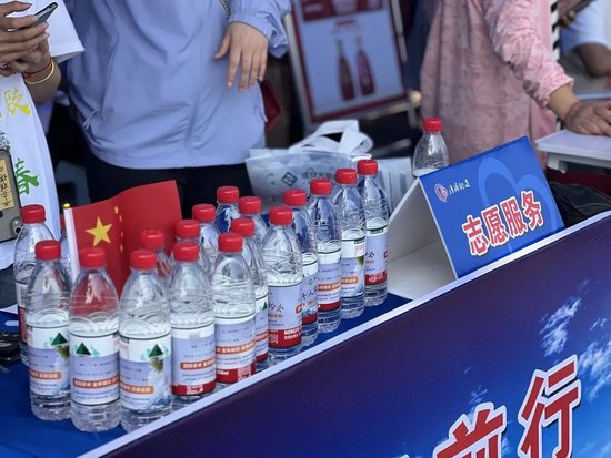 志愿者举着扇子