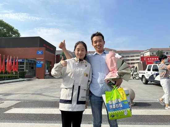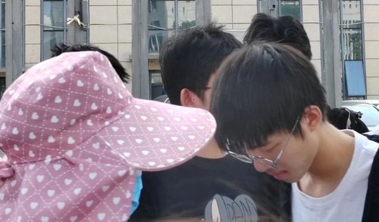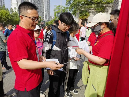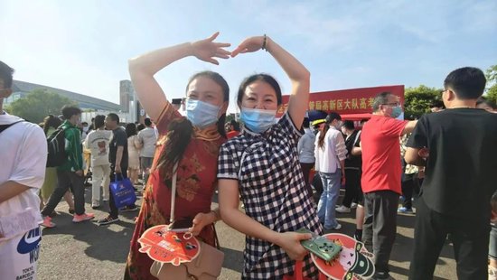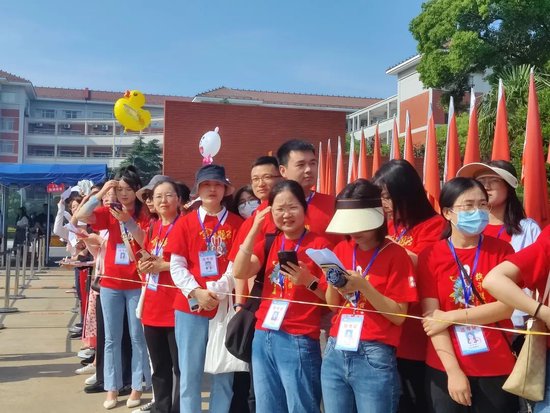 ▲ 家长在考场外给孩子加油。