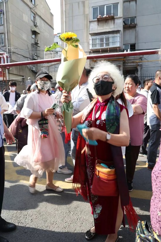 ▲ 海州高级中学的考生家长们在考点外为考生加油。