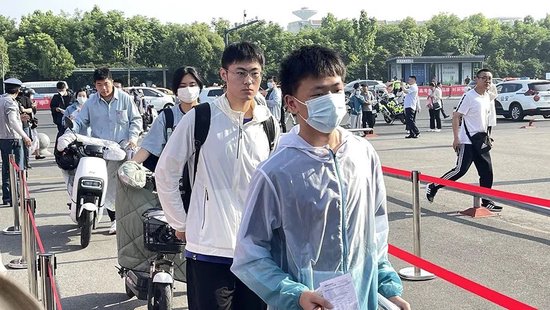 考生们昂首阔步、自信入场