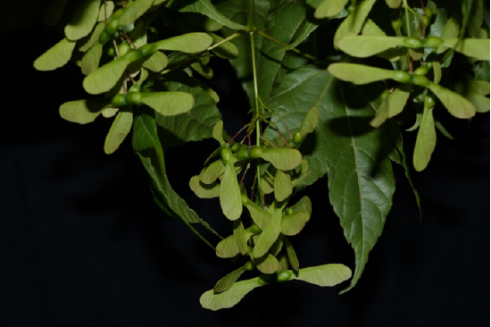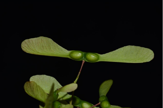 毛脉槭属无患子科槭属,其花期在4月下旬,果期为10月。像“竹蜻蜓”般的翅果嫩时紫色,后变淡黄色,张开成钝角或近于水平,翅果通过风散播。