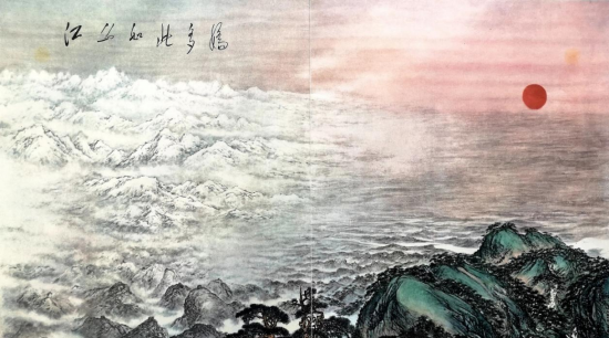 傅抱石和关山月在新中国成立十周年前夕联袂创作的《江山如此多娇》,将中华大地上几乎最能表现祖国壮丽山河、最能代表中华民族精神的景物艺术性地融汇在一起,完美地诠释出毛泽东首脍炙人口的诗词《沁园春·雪》中巍峨震撼的气魄。