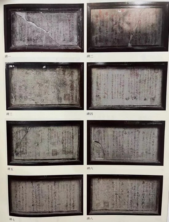 分别是:元代《“徽州路达鲁花赤捏古伯通议”墓志碑》、《“波斯人赡思丁”墓志碑》、《“阿拉伯人阿依莎·哈通”墓志碑》、《“阿拉伯人阿莱丁”墓志碑》、清代《颜真卿三表稿》、清代《邓石如心经碑刻》。